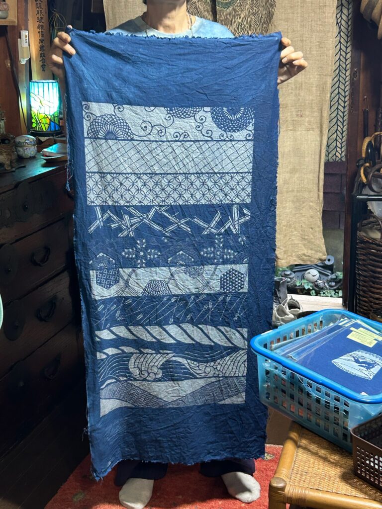 She chose her favorite fabric 🪡🧶, picked a color, and carefully applied colors made from rice 🌾🎨 onto the fabric. After drying, it was time for dyeing and rinsing with water 💦—and finally, the beautiful piece was complete 🎉👏.