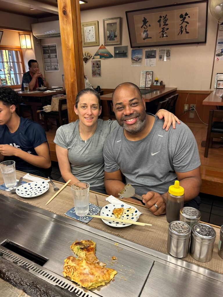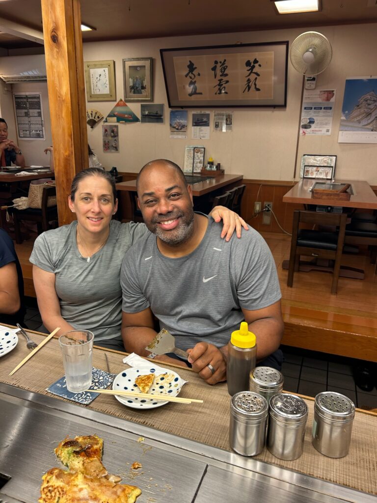 Together, we explored Himeji Castle 🏯, where I shared stories of its history, strength, and timeless beauty. Afterward, we enjoyed a delicious lunch at Cabbage, savoring both okonomiyaki and steak 🍴🔥.